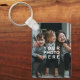 Fügen Sie zwei eigene Fotos zu dieser einfachen, modernen, zweiseitigen Schlüsselkette hinzu.