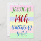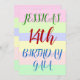 Dieses lustige Geburtstagsgeschenk-Einladungs-Design beinhaltet eine Nachricht wie "JESSICA'S 14. BIRTHDAY GALA", in der der Name und die Geburtstagsnummer angepasst werden können. Es bietet auch einen farbenfrohen, lustigen, geometrisch gestalteten Hintergrund. Die Veranstaltungsdetails auf der Rückseite können personalisiert sein. Es kann genutzt werden, um Leute zu jemandes vierzehnten Geburtstagsfeier oder Geburtstagsfeier einzuladen. [~Z0000311]
