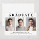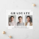 Einfache Ankündigung des Abschlusses mit 3 Fotos in der Mitte, "Graduate" in eleganter Typografie und den Namen, Schule und Klasse Jahr in der modernen Typografie.
