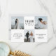 Moderne, elegante Hochzeitskartentafel in Schwarz-Weiß mit 4 individuellen Fotos (drei auf der Vorderseite und eins auf der Rückseite mit transparentem Overlay) und einem trendigen Typografie-Script.++++++ Einfach mit Ihren Fotos und Texten personalisieren!