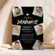 Moderne Einladungen für die echte Silber-Graduierungsparty mit einem stilvollen schwarzen Hintergrund, der in jede beliebige Farbe geändert werden kann, 6 Fotos des Absolventen und einer leicht zu personalisierenden Textvorlage.