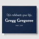 Dieses minimalistische Begräbnis-/Gedenkbuch enthält die Botschaft "Wir feiern euer Leben" und den personalisierten Namen und das Geburtsdatum/das Todesdatum des verstorbenen Individuums. Es könnte genutzt werden, um hochgeschätzte Erinnerungen von jemandem aufzuzeichnen, der kürzlich verstorben ist.