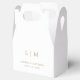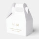 Einfache, aber elegante Wedding Favor Box mit modernem minimalistischem Design mit Ihren zwei Buchstaben Monogramm zusammen mit Ihren Namen und Datum. Alle Designelemente sind in Imitaten goldfarben auf weißem Hintergrund und können im Designbearbeitungstool geändert werden. Diese klassischen Gastgeschenk Hochzeit Boxen passen gut zu jedem Hochzeitsstil.