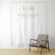 Einfache Hochzeitskabine mit modernem und dennoch elegantem Design mit zwei Buchstaben-Monogramm, Namen und Datum inmitten einer dünnen Grenze. Alle Texte sind in Gold auf weißem Hintergrund gehalten und Text und Hintergrundfarbe können in beliebig viele Farben geändert werden. Ein elegantes und stilvolles Design, das sich ideal für ein minimalistisches Paar eignet. Diese individuelle Kulisse eignet sich hervorragend, um mit den Gästen an Ihrem Hochzeitsempfang Bilder zu machen.