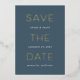 Modernes Save the Date Design in schick rauchig aquamarin-blau mit Sans Serif und kursiv Schrift in knusprig weiß, mit Ihren Namen, Hochzeitstag und Ort verstreut mit "Save the Date" in Gold. Personalisieren Sie Ihre Einladung und/oder Hochzeitswebsite auf der Rückseite. Ein elegantes Save the Date Design für moderne Paare mit minimalistischer Ästhetik.