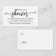 Niedliche Brautparty-Einschließkarte mit einem einfachen und minimalen Design in Schwarz-Weiß mit "Dusche" in Drehbuch und eine Nachricht, die Ihre Gäste frage, ihr Geschenk unverpackt verlassen. Sie können die Karte als Geschenk-Tag mit Skript "zu" und "von" auf der Rückseite oder löschen Sie den Text. Eine Schaudusche ist der perfekte Weg, um in einer Öko-freundlichen Art und Weise zu feiern, während man sich mehr Zeit für die Gäste lässt, als Geschenke zu öffnen.
