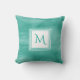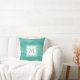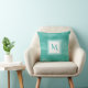 Ein schlichtes, subtiles, viereckiges Kissen in aquamarinem Grün mit einem modernen, weißen Abzeichen, das Sie durch das Hinzufügen Ihres mit Monogramm Initialen zu personalisieren. Dies ist Teil der Arcadia Subtle Marble Monogram Collection.