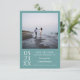 Diese Save the Date Karte ist modern, minimalistisch und einfach, aber elegant. Es verfügt über ein quadratisches Foto auf einem aquamarinen türkisfarbenen oder aquafarbenen Hintergrund mit einem künstlerisch in senkrechten Zahlen dargestellten Hochzeitstermin. Eine tolle Art, um Ihre Freunde und Familie lassen, wissen, ihre Kalender für Ihre kommende Hochzeit zu markieren.