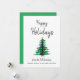 Dieses einfache, moderne und minimale Design besticht durch die Worte "Happy Holidays" in eleganter Schrift-Typografie für einen handgeschriebenen Look. Unter dem Gruß befindet sich ein rustikaler, abstrakter, immergrüner Wasserbaum, der mit bunten Sternschmuckstücken, darunter ein goldener Stern oben, geschmückt ist. Unter dem Baum befinden sich zwei anpassbare Zeilen. Die Rückseite ist ein schönes, weiches Grün. Sie können diese Karte personalisieren, indem Sie den Text in der Produktvorlage ändern.