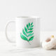 Minimalistische botanische Aquarellbilder mit einem einfachen grünen Zweig auf einer Tasse.
