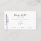 Einfache Auswahl an feinen Lavendelspeisen RSVP Begleitkarte