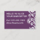 Einfacher babysitting Visitenkarteentwurf mit Textbereich, den Sie leicht personifizieren können, um dieses Ihre Selbst zu machen. Spaß-, bunter und süßerentwurf mit hübschem Blumen blühen macht dieses eine große Geschäftskarte für die Themen, die auf einer Tagessorgfalt, einem Kindermädchen, Aupaaren, einer Kinderbetreuung oder einem Baby Sitter bezogen werden.