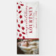 Feiern Sie mit unserem Banner der modernen Abschlussfeier den Erfolg Ihres Absolventen. Mit einem anpassbaren, weißen Hintergrund, einem personalisierbaren Foto des Absolventen, spielerisch fallenden roten Mörtel-Kappen und einer schlanken Textvorlage. Dieses Banner vereint Stil und Feiern mühelos und macht es zu einem herausragenden Stück in jedem Party.