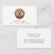 Einfache, moderne Friseur-Visitenkarte, mit Scheren auf einem rustikalen Holzhintergrund rundes Logo und Ihrem Namen in einem modernen Drehbuch. Braun und schwarz auf weiß. Der einfache Stil.