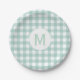Mit diesem klassischen Gingham-Muster im klassischen Salbei-Grün mit einem weißen kreisförmigen Platz können Sie Ihr Monogramm in einem passenden extravaganten Block-Schriftart hinzufügen! Ersetzen Sie die Initiale durch Ihre eigene..Wählen Sie Ihren Schriftart oder entfernen Sie das Monogramm und fügen Sie Ihr eigenes Design hinzu. Ideal für Hochzeiten, Jubiläen, Wiedersehen und Mittagessen.