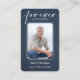 Eine einfache Gedenkkarte zeigt "Forever in our heart" mit dem Foto, dem Namen und dem Geburtsdatum Ihres Geliebten, und ein Gedicht oder Gebet auf der Rückseite wird auf einem blauen Denim-Muster gedruckt. Wunderschön für einen wertvollen Sake, Beerdigung und Feiern von Lebensdenkmal.