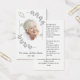 Auf dieser eleganten Gebetskarte wird ein Foto Ihres Liebsten gezeigt. Ein einfacher botanischer Rahmen von Boho umgibt den Verstorbenen, der Name und die Lebensdaten des Verstorbenen sind unten beschrieben. Auf der Rückseite ist Platz für einen Lieblingsvers, Gebet, Psalm oder Erinnerung.