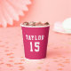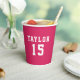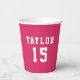 Einfache Papiertassen im variantenreichen Stil mit Name und Nummer und voll bearbeitbaren Farben. Die Schriftart-Farben können durch Anklicken des Buttons angepasst werden. Wählen Sie die Texte in den Ebenen "Auto Warping, Front" und "Auto Warping, Back" aus und ändern Sie die Farbe. Die Hintergrundfarbe kann geändert werden, indem man auf die Ebene "Auto Warping, Wrap" wechselt und die Hintergrundfarbe ändert. Sie machen die perfekten Papiertassen zum Geburtstag, Abschluss oder zur Feier der Errungenschaften Ihres Athleten. Personalisieren Sie diese, indem Sie den Platzhalter-Text durch Ihre eigenen Informationen ersetzen. Für weitere Optionen, wie zum Beispiel den Schriftart zu ändern und ihn zu vergrößern oder zu verändern, klicken Sie auf den Button "Anpassen". *Bitte beachten Sie, dass das Zazzle-Wasserzeichen, das in der Zoomvorschau angezeigt wird, NICHT auf dem gedruckten Endprodukt erscheint. © Rosewood and Citrus