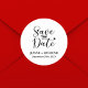 Die Einführung des "Simple Custom Calligraphy Wedding Save the Date Classic Round Sticker" - eine raffinierte Möglichkeit, Ihre Hochzeitsnachrichten zu teilen. Dieser Aufkleber mit individualisierbarer Kalligraphie in zeitlosem Runddesign verbindet persönliche Touch mit Eleganz. Aus hochwertigen Materialien gefertigt, ist es ideal, um Ihren Einladungen oder Gastgeschenke Hochzeiten ein raffiniertes Detail hinzuzufügen. Die klassische Form und das elegante Drehbuch machen es zu einer besonderen Wahl für Paare, die ihren einzigartigen Stil mit dezenter Grazie gewollt haben.