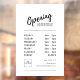 Einfache und Berufliche Geschäftsöffnungszeiten Schwarz mit Logo-Fenster-Aufkleber, die die Sichtbarkeit und Professionalität Ihres Schaufensters verbessern sollen. Dieses moderne minimalistische Dekor ist perfekt für jedes Geschäft und zeigt deutlich Ihre Öffnungszeiten und Ihr Firmenlogo, sodass die Kunden gut informiert sind. Das einfache, saubere, schwarze Design auf weißem Hintergrund harmoniert nahtlos mit jedem ästhetischen Business und bietet ein schlichtes und dennoch elegantes Aussehen. Diese benutzerfreundliche Fensterklemme eignet sich ideal für den Einsatz in Geschäftsfenstern und bietet Platz für Ihre Telefonnummer und für Social Media-Griffe, sodass sich Kunden problemlos verbinden können. Ob für ein Restaurant, ein Einzelhandelsgeschäft oder ein Büro - diese Öffnungszeiten-Aufschrift hilft Ihnen, ein poliertes und berufliches Bild zu präsentieren.