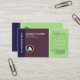 Ausrüstungsbeschreibungen ein blaues Rechteck an dem links, das den umgekehrten Handelsnamen unterbringt; Dieses ist, Einzigartigkeit dem Entwurf hinzuzufügen. Das folgende lila Stück hat Ihren renommierten Namen- und Jobtitel. Direkt unter dieses, ist das Imitatgoldlogo. Die hellgrüne Spalte auf dem Recht hat ein eingebettetes globales Impressum auf ihr. Ein Slogan tagline sitzt an der Spitze während nahe der Basis sind die Kontaktdetails.