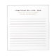 Ein berufliches Notizblock mit minimalistischem Design. Individuelle Name und Titelposition Rolle und Unternehmen oder Sondertext in Bordeaux und Gold auf einem einfachen, weißen Hintergrund dargestellt. Personalisieren Sie die Eingabe mit den angegebenen Feldern, oder wenden Sie sich mit der Schaltfläche 'Nachricht' an den Designer, um Hilfe zu erhalten.
