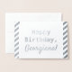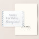 Dieses schlichte Silberfolie Geburtstagskartendesign enthält die Meldung "Happy Birthday" auf der Vorderseite und einen Namen, der personalisiert werden kann. Innen ist eine personalisierte Nachricht. Es könnte jemandem geschenkt werden, der einen Geburtstag feiert.
