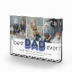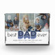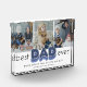 Moderner Foto Block mit 3 Familienbildern, die Sie durch Ihre eigenen Erinnerungen ersetzen können, das Sprichwort "bester Vater aller Zeiten" und die Kindernamen.