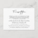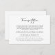 Die Simple Black and White Wedding Transportation Card ist die perfekte Ergänzung zu Ihrem Hochzeitsgeschenk. Mit seinem sauberen und minimalistischen Design ergänzt er mühelos jedes Hochzeitstil. Mit dieser Transportkarte können Sie wichtige Details wie die Transportmöglichkeiten, Abhol- und Abflugorte sowie spezielle Anleitungen für Ihre Gäste angeben. Die zeitlose Schwarz-Weiß-Farbe verleiht Ihren Hochzeitsaufenthalten eine Touch Eleganz. Konzipiert zur Koordination mit der "Moderne Klassik" Hochzeitskollektion. Klicken Sie zum Ändern der Details auf "Personalisieren". Sehen Sie sich den Sammellink auf dieser Seite an, um alle passenden Elemente in diesem schönen Design zu sehen.