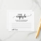 Diese schlichten schwarzen Kalligrafiekarten sind die perfekte Wahl für einen rustikalen oder modernen Hochzeitsempfang oder Brautparty. Das minimalistische Design besticht durch einen eleganten Schriftart mit Pinselskripten und ein reizendes Frauenherz. Das Matching Time Capsule Zeichen wird separat verkauft.