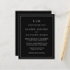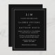 Einfache preiswerte Hochzeitseinladung mit modernem und elegantem Design mit zwei Buchstaben Monogramm oben und Ihren Details umgeben von einer dünnen Grenze. Der gesamte Text ist auf schwarzem Hintergrund weiß. Die Schriftart und Hintergrundfarben können durch Anklicken des Buttons "Anpassen" in beliebig viele Farben geändert werden. Diese billigen Einladungen sind ideal für ein minimalistisches Paar.