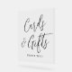 Einfaches und elegantes Hochzeitszeichen mit der Phrase "Karten und Geschenke" in schwarzem Schrift mit transparentem Acrylhintergrund. Personalisieren Sie das Acrylzeichen mit eigenem Text, wie z.B. Ihren Namen, Hochzeitstag, Dankeschön, etc. Das Schild kann auch für andere Veranstaltungen wie Brautpartys, Babyduschen, Geburtstagspartys und vieles mehr verwendet werden!