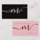 Einfache, blassrosa Minimal-Monogramm-Script schw Visitenkarte