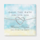 Einfache, moderne Kalligraphie, elegante blaue Hochzeit bewahren den Dattelmagneten mit Imitaten silbernen Seilherz.
