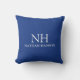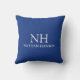 Modernes Handkissen mit einem schlichten und minimalblauen Design mit Ihrem Monogramm in einem kühlen Schriftart zusammen mit Ihrem Namen.
