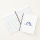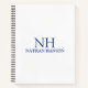 Modernes Businessnotebook mit einem schlichten und minimalen Blau-Weiß-Design mit Monogramm in einem kühlen Schriftart zusammen mit Ihrem Namen vorne. Auf der Rückseite finden Sie Ihre Kontaktdaten.