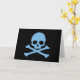 Diese grafischen T-Shirts und andere Gegenstände sind mit einem schlichten Schädel und Kreuzknochen in niedlicher Babyblau und Schwarz verziert. Gut für Gotik, Halloween und Piratenthemen.