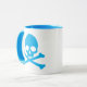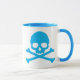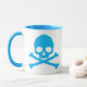 Diese grafischen T-Shirts und andere Gegenstände sind mit einem schlichten Schädel und Kreuzknochen in niedlich blauer Farbe dekoriert. Gut für Gotik, Halloween und Piratenthemen.