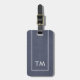 Elegante, anpassbare blaue Gepäckmarke mit weißem Rahmen und feinem Monogramm.