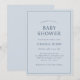 Bereiten Sie sich darauf vor, Ihre Kleine in die Welt mit dieser Simple Blue Baby Shower Invitation willkommen zu heißen, die mit marineblau blauem Text auf einem hellstaubigen blauen Hintergrund ausgestattet ist und perfekt geeignet ist, um den Ton für ein anspruchsvolles Fest zu setzen!
