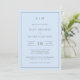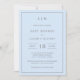 Einfache Junge Paare Baby Dusche Einladung mit einem modernen und eleganten Design mit Ihren zwei Buchstaben Monogramm oben und Ihre Details umgeben von einer dünnen Grenze. Der gesamte Text ist grau, pastellblau. Die Schriftart und Hintergrundfarben können beliebig verändert werden. Ein elegantes und stilvolles Design, das sich für minimalistische Eltern eignet.