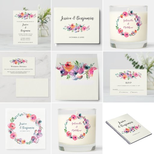 Colorful Watercolor Boho Floral Wedding CollectionDesignt von Opal Ellery
