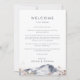 Diese einfachen Blumenkarten für Hochzeitsbriefe und Touren sind perfekt für eine Hochzeit im Freien. Das moderne minimalistische Design besticht durch einen marineblau-farbenen Berg mit rot-rosa Moody fall-Wildblumen. Auf der Vorderseite der Karte befindet sich ein Begrüßungsschreiben, auf der Rückseite der Karte befindet sich der Hochzeitstag. Diese Noten sind ideal für Hochzeiten in Urlaubsort und Begrüßungstaschen für Hotelgäste.
