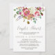 Diese einfache Blumenstrauß-Duschkarte mit Aquarell ist ideal für eine klassische und elegante Hochzeitsdusche. Die Einrichtung besteht aus rosa, pfirsichfarbenen und lila Pfannkuchen mit weißen Hydrangeas und einer Elfenbein-Creme mit weißem Streifen.