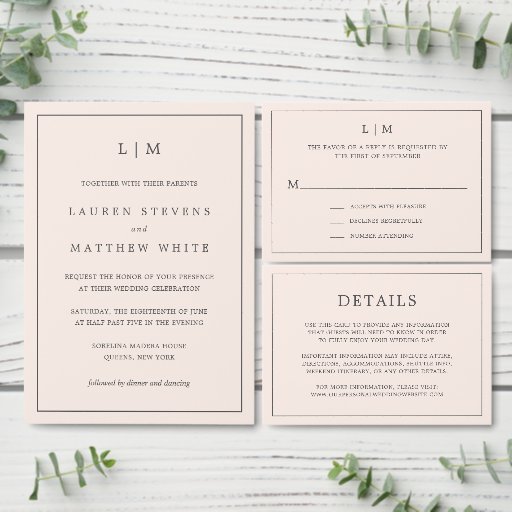 Simple Blush Pink Monogram Wedding Invitation SetDesignt von Cynthia Rinne