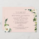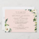 Moderne Blush Hochzeitseinladung. Beide Sets der Eltern sind aufgeführt. Gemischter Schriftart Weißes Blattwerk und Blumen.