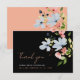 Einfache Boho Black and Pink Floral Wedding Dankeskarte