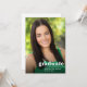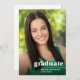 Einfache This, minimalist graduation card feys a bold white typography overlay and a full foto. The word "Graduate" is written in lowercase letters in bold, trendy lettering, with the graduate name and graduation year below. The white typography design is placed in the lower right corner and overlays a full foto with vertikale orientierung. The back of the graduation card includes a template to add graduation party details.