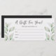 Einfache und moderne Aquarellfarben botanische Blätter auf einem Geschenkgutschein mit Schwarz-Weiß-Karte.