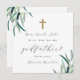 Einfache und moderne botanische Pate-Vorschlagskarte bietet "Werden Sie mein Pate sein" Text mit schwarzer Kalligrafie Schrift Typografie. Dieses Patronat hat einen rustikalen minimalen Stil, mit einer grünen und weiß editierbaren Farbe Rückseite der Karte.